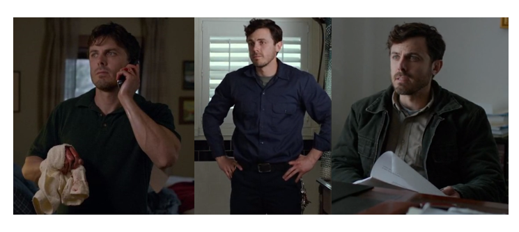 Lee Chandler experiences a life changing event, and with this internal transformation we witness an external transformation, thanks to the effective costume designs of Melissa Toth. During flashbacks showing Chandler’s earlier life with a wife and children, he dresses in light and colourful clothing, such as a bright mustard t-shirt and beige shorts. These colours reflect the presence of a brighter and more comedic personality at this point, and as well as the presence of purpose in his life as a father and husband.